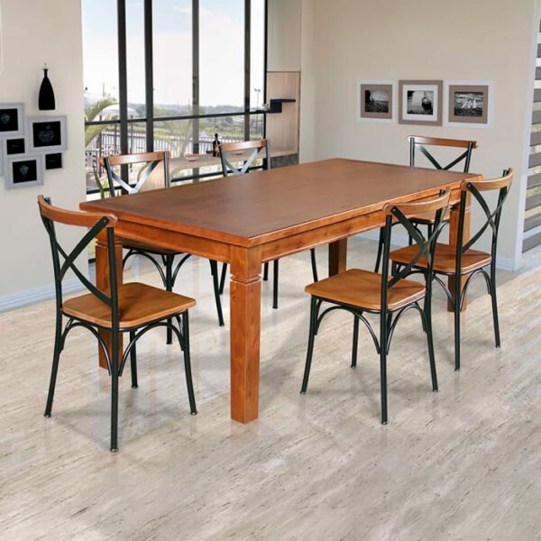 Conjunto Jantar Mesa Aurora Retangular Madeira Maciça 180x80 com 6 Cadeiras Paris Base Alumínio